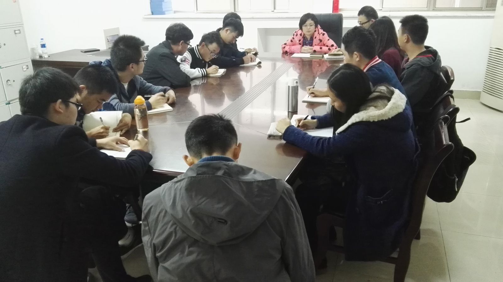 11月16日下午,海洋之神线路网址研究生党总支在格物楼302召开工作例会,参加会议的有辅导员侯静老师及研究生各支部书记。