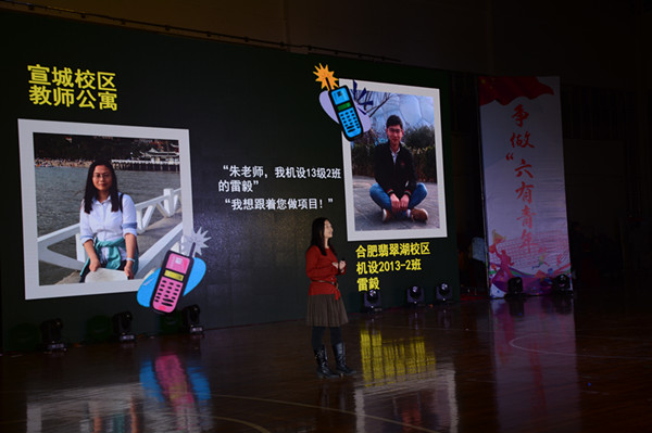 本次晚会分为三个部分,优秀学子的成长故事分享,“百里挑一”优秀学生颁奖以及精彩的节目表演。在故事分享环节中,学生会主席吴弘毅用他个人的大一经历讲述了如何在学习和学生工作中找到平衡点,即收获学习上的国家奖学金又能在工作中表现出色担任学生会主席,现场被他的坚持不懈、奋斗拼搏的精神所感动;电气学子缪乐颖是校十佳素质标兵,她丰富的大学生活引起了同学们的关注,她用生动的语言描述了她在第二课堂中发展自己的兴趣的经历,并且一直努力坚持提升自己综合素质;朱立红老师是创新创业优秀指导教师,她带领的团队获得了机械设计创新大赛全国一等奖,她的故事则让全场想要参与创新创业项目的同学有了更加明确的方向;最后一位分享者刘洋是校级大学生优秀党员,他在追寻信仰的道路上砥砺前行,从未退缩,青春因奋斗而闪光,人生因奉献而无悔。作为一个优秀共产党员,他坚定的信仰和奋斗的经历鼓励着机械学子们勇往直前。