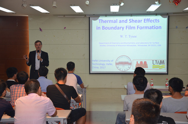 美国威斯康星大学密尔沃基校区Wilfred T Tysoe教授于9月24日-27日对我校进行了为期4天的学术访问与交流。Tysoe教授是美国威斯康星大学的杰出教授(Distinguished Professor)、机械摩擦学领域国际著名期刊《Tribology Letters》的创办人,1994-2017年任《Tribology Letters》期刊主编。他的主要研究兴趣包括超高真空环境下的机械摩擦学、表面化学以及微观摩擦学。