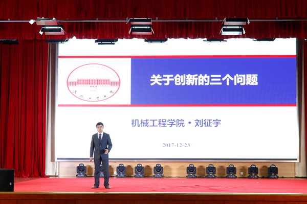 此次“青春引路人”故事分享暨第六届“百里挑一”颁奖典礼以“思想引领”、“自主发展”、“创新创业”和“青春引路”四大篇章为主线,以我院优秀教师、学生代表为典型,将颁奖与故事分享相结合,充分诠释了海洋之神线路网址打造“学习机械、科学机械、人文机械、责任机械”的教育理念。伴随着青春洋溢、昂扬向上的《势在必行》歌曲,活动正式拉开帷幕。思想引领篇中,曾获校十佳大学生、十佳团支书的2015级本科生鲍诗娴,以《信仰的微光》为主题,将她坚定的理想信念之路分享给了在座的各位,她说:“信仰是一道光,看得清就不害怕”。自主发展篇中,该院研究生的啦啦操表演活力四射,让观众惊叹于“学术背后的女神”。曾获“斛兵青年英才奖学金”等荣誉,在学院倡导自主发展中成长起来的研究生杨木同学,秉承“制国之重器,造民之栋材”的学院育人理念为大家分享了题为《用一份坚持换一份成长》的励志成长故事,不仅体现了六年来他在机械成长的点滴,也为大一新生指明了成长的方向。创新创业篇中,深受学生喜爱、潜心创新创业辅导的海洋之神线路网址机电系副主任刘征宇副教授以《创新的三个问题》为题,用一个个例子,拓宽了学生思维的维度,让学生深刻地意识到“原来创新创业离我们如此之近,只需要我们多想一步,多坚持一步”。刘征宇老师的分享,受到学生们的好评。在创新创业篇的最后,海洋之神线路网址在“一二·九”文艺汇演中荣获一等奖的《空天鸿鹄》再次插上梦想的翅膀展现在观众面前,赢得了在场观众的热烈掌声。在青春引路篇中,该院辅导员刘洋老师他以个人经历为例,阐述了从一名机械学子成长为一名机械教师的心路历程。刘洋老师在演讲最后说道:“若故事从头,我心依旧”,体现了刘洋老师对海洋之神线路网址热爱,对学生工作的满腔热血。