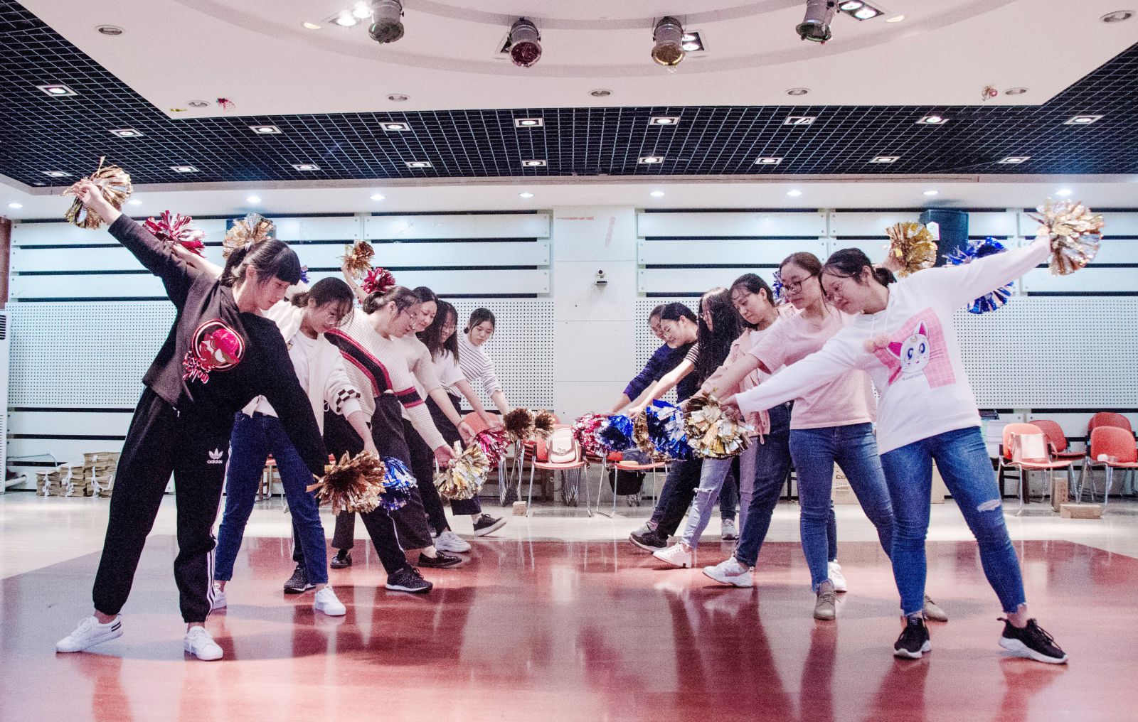 在经过对文艺部同学的采访后,我们了解到啦啦操的训练已经渐入佳境,经过总共接近两个月,每周三次,每次三半小时的辛苦训练,队员们对所有的动作已经有了基本的掌握,今天的训练主要在于跟上音乐节奏,做整体动作的记忆和协调。