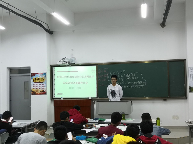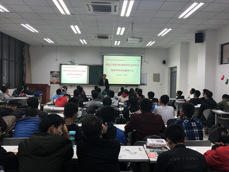 为了更好地迎接我校本科教学审核评估,11月8日,宣城校区机械工程系开展2018级学生本科教学审核评估动员辅导大会,2018级446名同学参加了本次大会,大会由2018级辅导员孙怡芳老师主持,2018级辅导员陈球胜出席会议,宣城校区学生工作办公室副主任朱衍飞老师出席大会并做动员讲话。