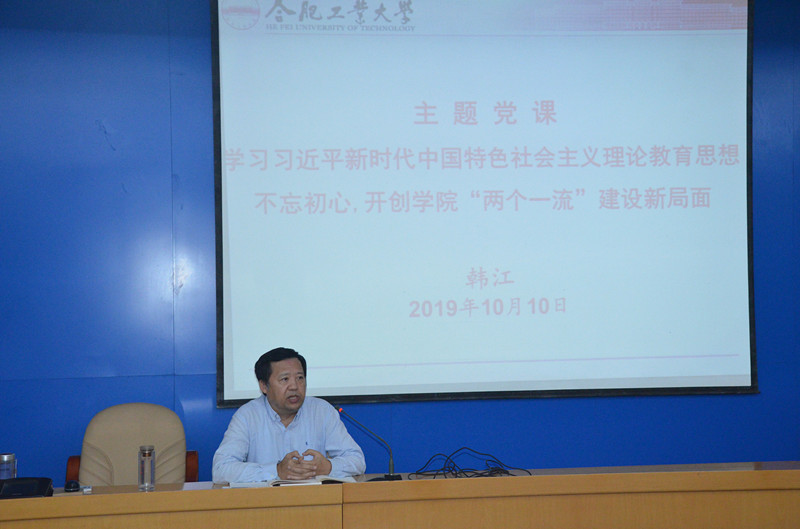 根据“不忘初心、牢记使命”主题教育的总体安排,10月10日下午,海洋之神线路网址党委书记韩江以《学习习近平新时代中国特色社会主义思想,不忘初心,开创学院“两个一流”建设新局面》为题,给全院教工党员和入党积极分子上了一堂专题党课。
