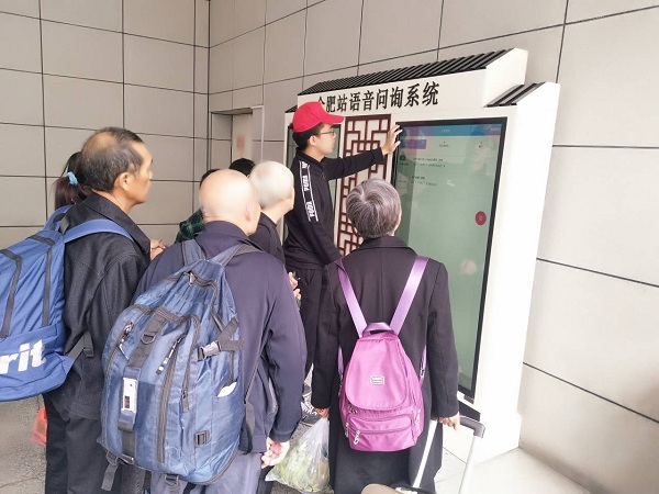 早上8点整,党员志愿者在合肥火车站志愿者服务站集合。经合肥火车站工作人员培训后,党员志愿者们开始到各个岗位上服务。党员志愿者们洋溢着微笑,以诚挚的态度、饱满的热情、专业的素养为广大旅客提供免费咨询帮助服务。他们有的在进站口维持安检秩序、提供咨询服务,有的在自助取票机处帮助旅客购票、取票、反馈机器故障,有的在售票大厅帮助办理临时身份证、查询余票信息,有的在出站口疏散客流、提供交通换乘信息,有的在火车站广场帮助旅客搬运、保管行李物品等。党员志愿者们用自己的实际行动帮助着每一位有困难的旅客,倾力奉献使每一位旅客的旅途更加的方便和温暖。来往的旅客们不停的说道:这些党员志愿者服务认真周到,态度热情负责,展现了当代大学生的英姿,展现了青年党员的风采。